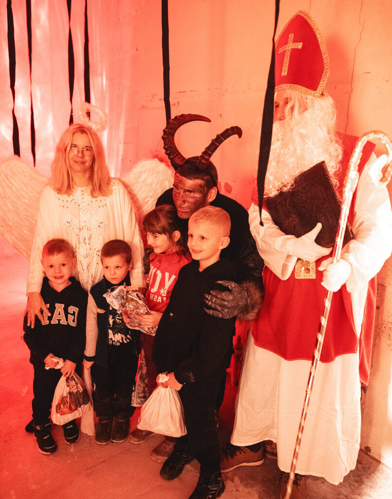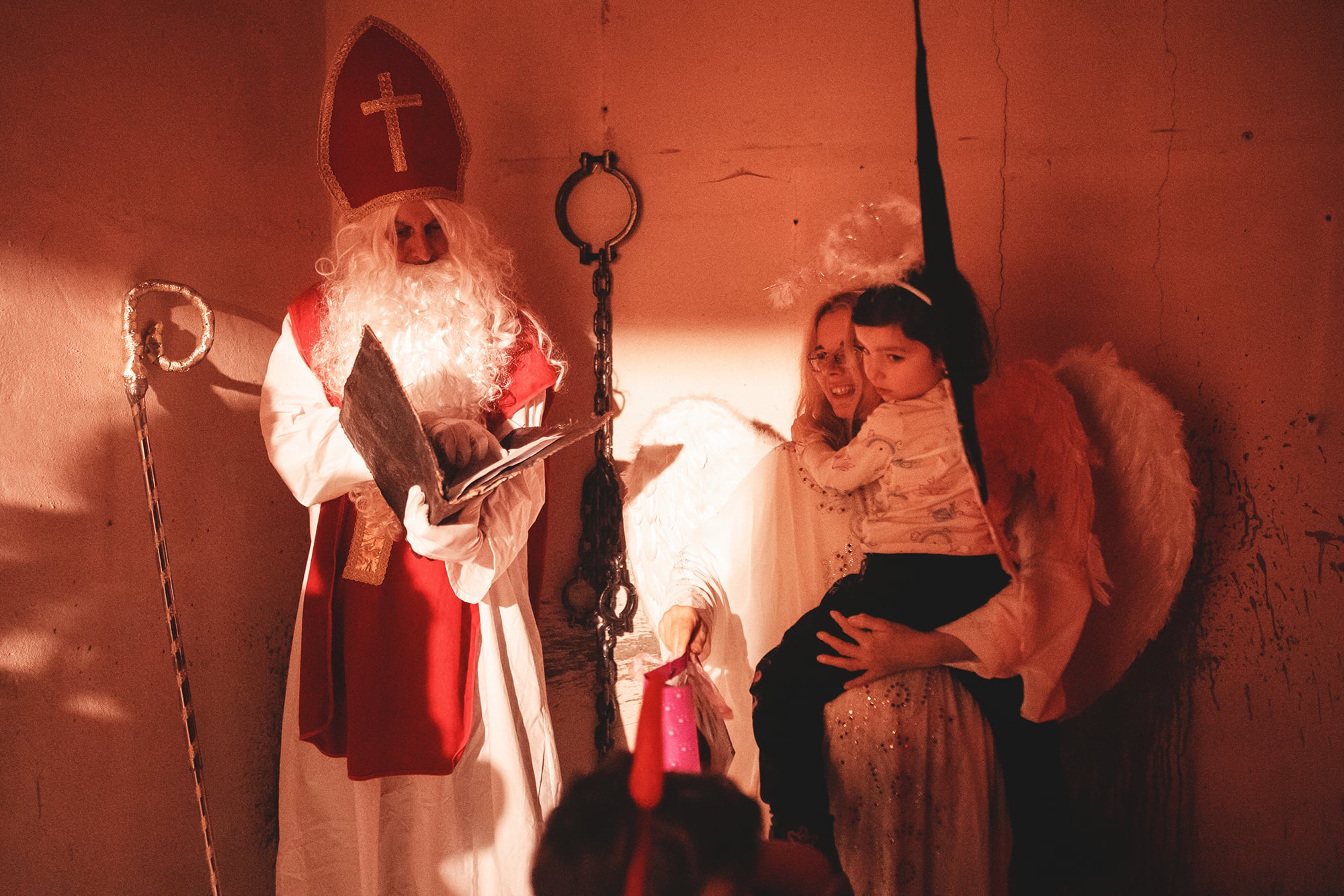 – přijde vaše chvíle! Děti projdou „cestou do pekla“, kde čert i anděl přihlížejí a Mikuláš předá balíček a pochvalu.