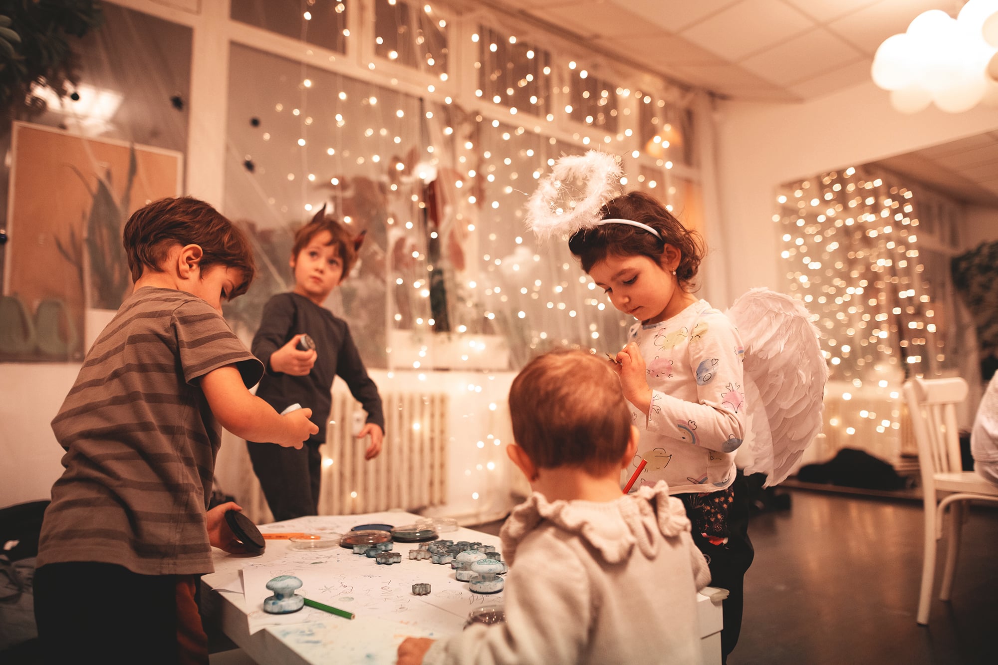 Zatímco čekáte na setkání s Mikulášem, děti si užijí další vánoční aktivity: „Nebe“ v malém sále – tvořivá dílna s Terezkou, kde děti vyrábějí andělské dekorace. Na hladký průběh dohlíží náš andělský tým.